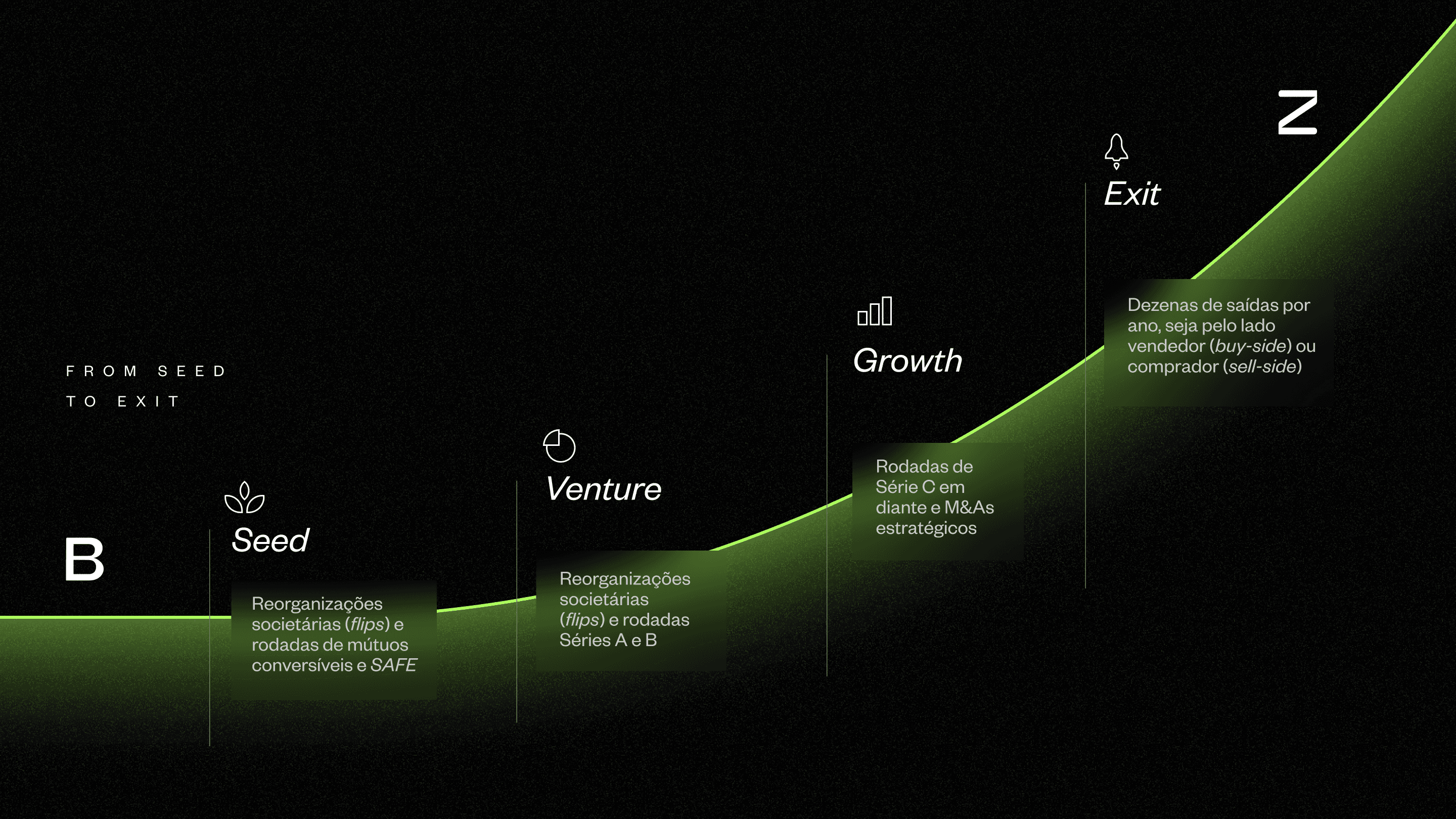 Com um sólido track-record de centenas de operações de M&A, reorganizações societárias, e rodadas de investimento, nós criamos valor para nossos clientes em todas as etapas de desenvolvimento de uma startup.